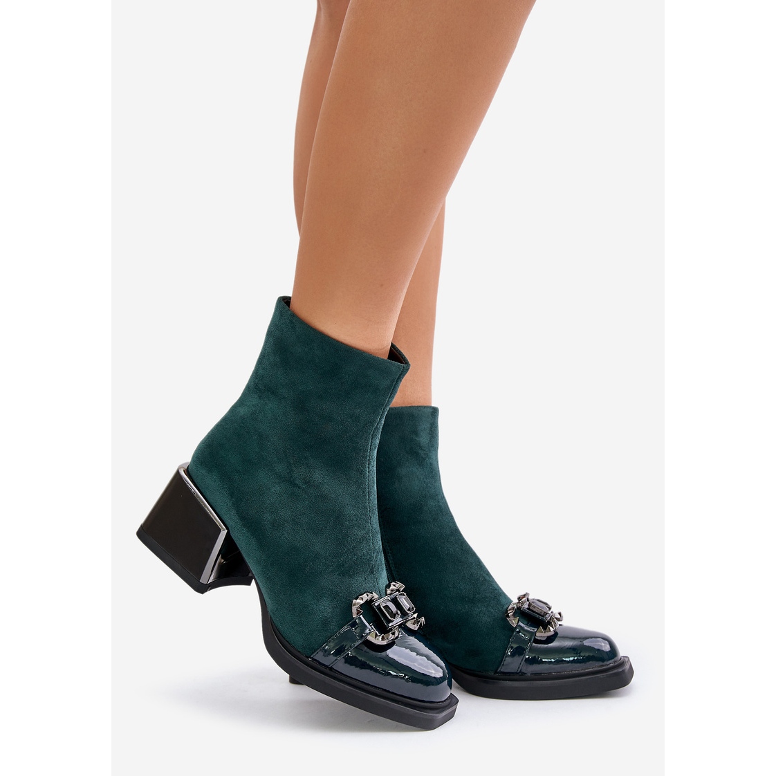 Details: S.Barski Elegante Damenstiefel mit hohem Absatz und Verzierung, Dunkelgrün MR880-127