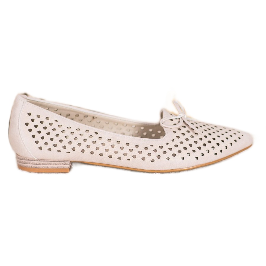 Die braune Farbe dieser Ballerinas passt sowohl zu lässigen als auch zu eleganteren Outfits perfekt und macht sie zu einer vielseitigen Ergänzung jeder Garderobe. Details wie eine Schleife auf der Vorderseite und ein durchbrochenes Muster verleihen ihnen einen einzigartigen Charakter. Die Innensohle aus Naturleder sorgt für Komfort und Freude beim Tragen.