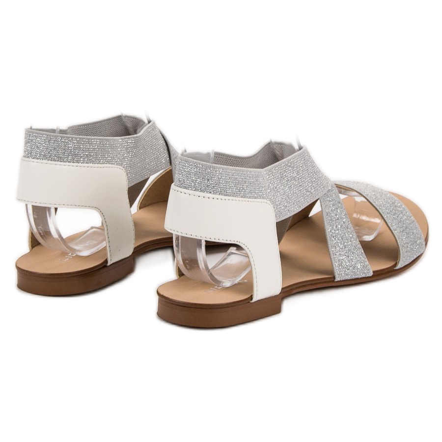Entdecken Sie Eleganz und Komfort mit den SHELOVET-Sandalen in einer wunderschönen grauen Farbe. Diese äußerst femininen flachen Sandalen zeichnen sich durch eine Kombination aus silbernen und weißen Elementen aus, die ihnen einen modernen, stilvollen Look verleihen. Ein weißer, breiter Riemen aus ökologischem Leder stützt den Schaft sanft an der Ferse und sorgt so für Tragekomfort den ganzen Tag.