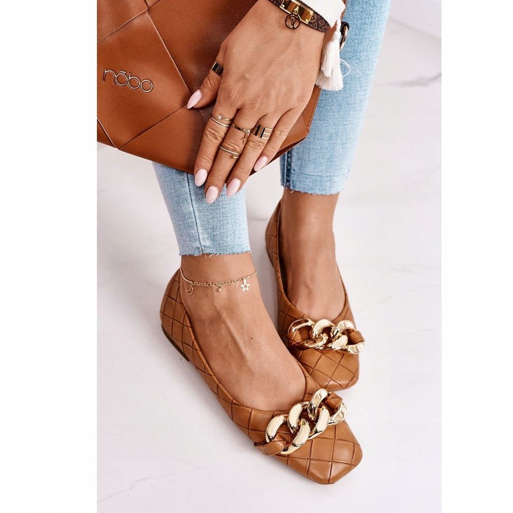 PS1 PS1 Elegante gesteppte Ballerinas mit Camel Coco-Kette braun