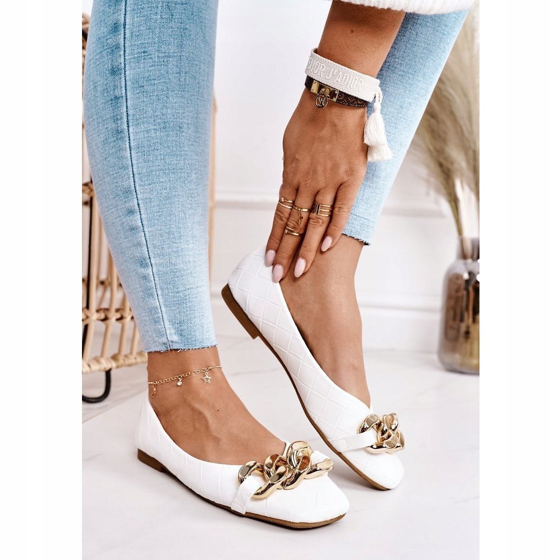 Details: PS1 Elegante gesteppte Ballerinas mit weißer Coco-Kette