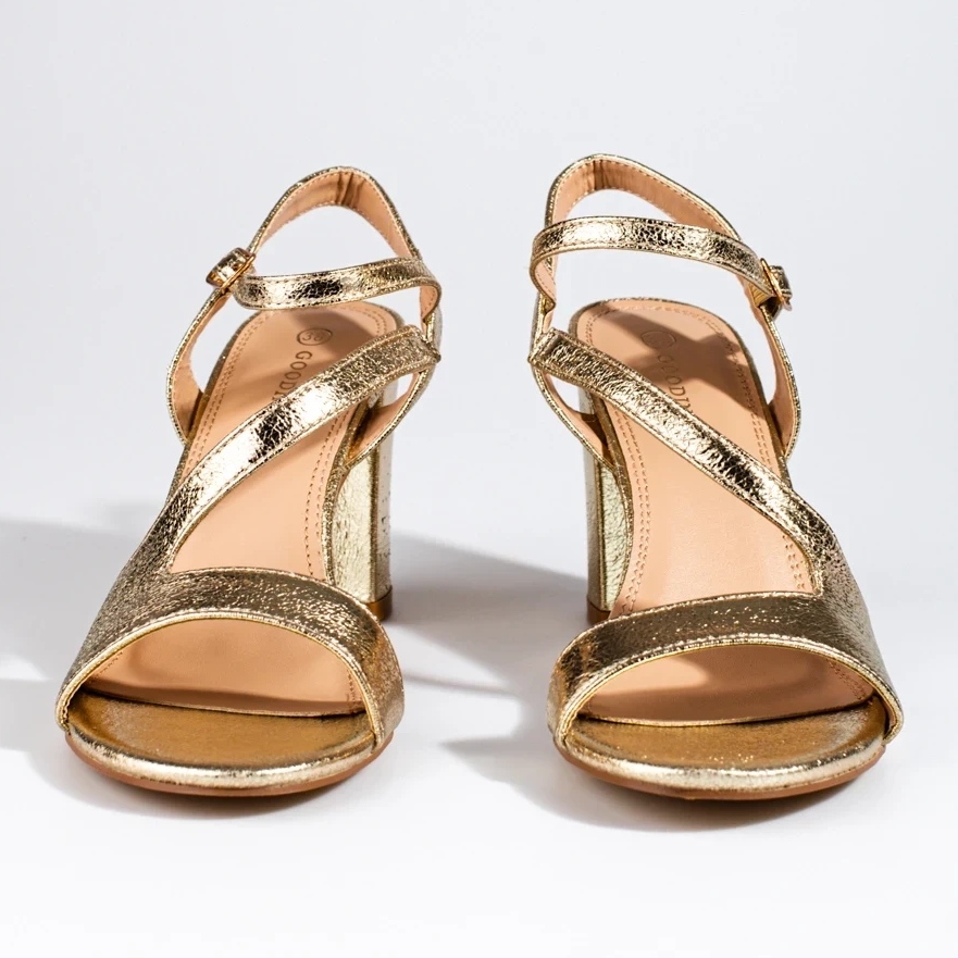 Inna marka Elegante goldene Damensandalen von Shelovet auf dem Pfosten schwarz