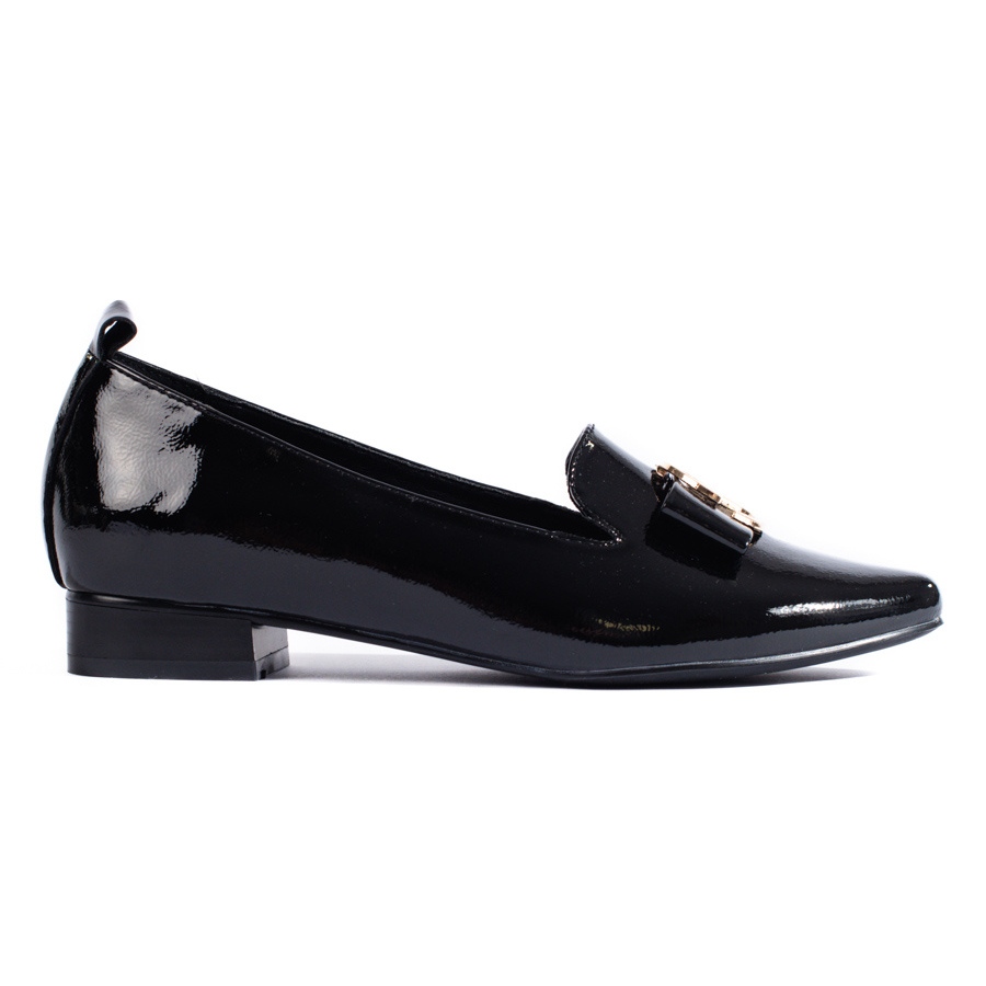 Elegant lackierte Mokassins mit niedrigem Absatz von Vinceza sind die perfekte Wahl für Frauen, die Wert auf Komfort gepaart mit Eleganz legen. Aus hochwertigem ökologischem Leder gefertigt, überzeugen diese schwarzen Mokassins durch ihr minimalistisches Design und dezente Details, wie zum Beispiel Strasssteine, die ihnen einen einzigartigen Charakter verleihen.