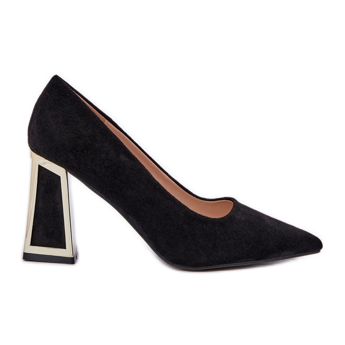 Wir präsentieren elegante Pumpen auf einer Säule mit spitzen Zehen in zeitloser schwarzer Farbe, die Ihre Abendstilisationen und elegante Outfits perfekt ergänzen. Diese Pumpen bestehen aus hochwertigem Öko -Wildleder und kombinieren modernes Design mit einem klassischen Stil.