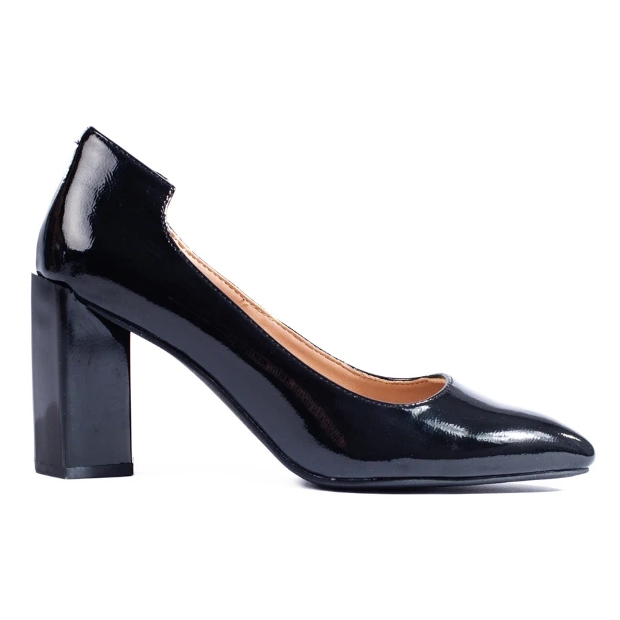 Elegante schwarze Frauenpumpen aus einer anderen Marke - ein Klassiker in einer lackierten Ausgabe. Perfekt für den Abend, Feier oder für einen eleganten Look im Büro; Sie kombinieren einen zeitlosen Stil mit Bequemlichkeit.