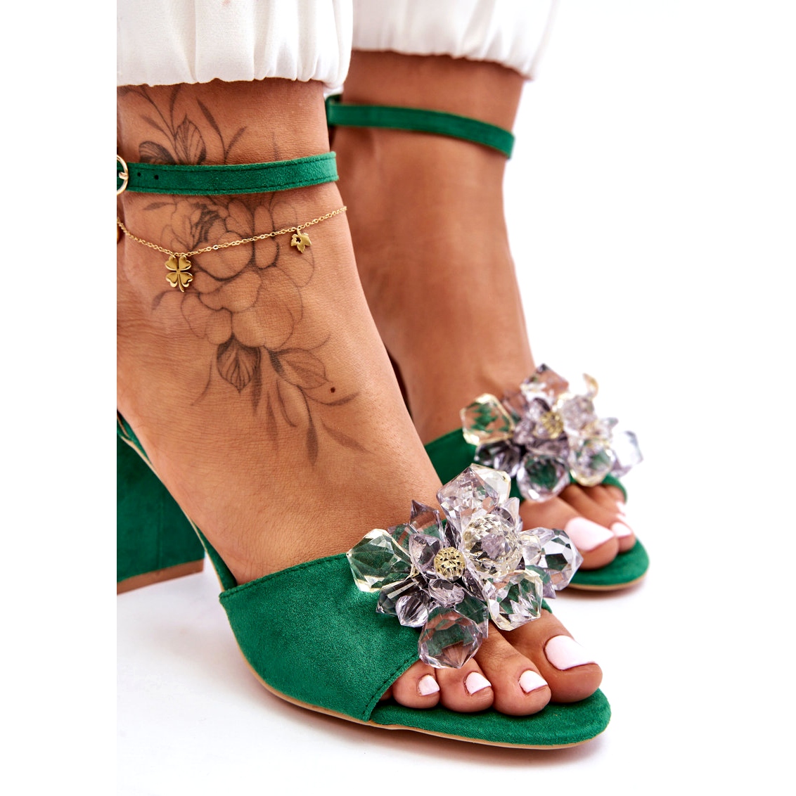 Elegante Seastar-Sandalen mit Kristallen auf hohen Absätzen, grüner Cameron – Synonym für Eleganz und raffinierten Stil