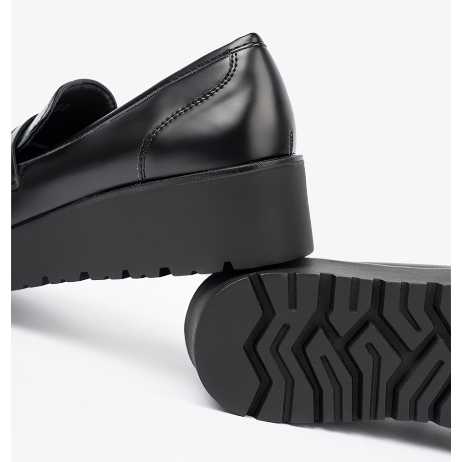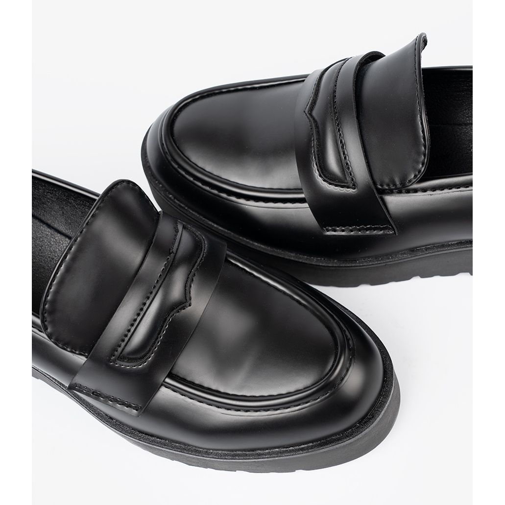 Details: Shelvt Elegante schwarze Slipper auf einer dicken Sohle