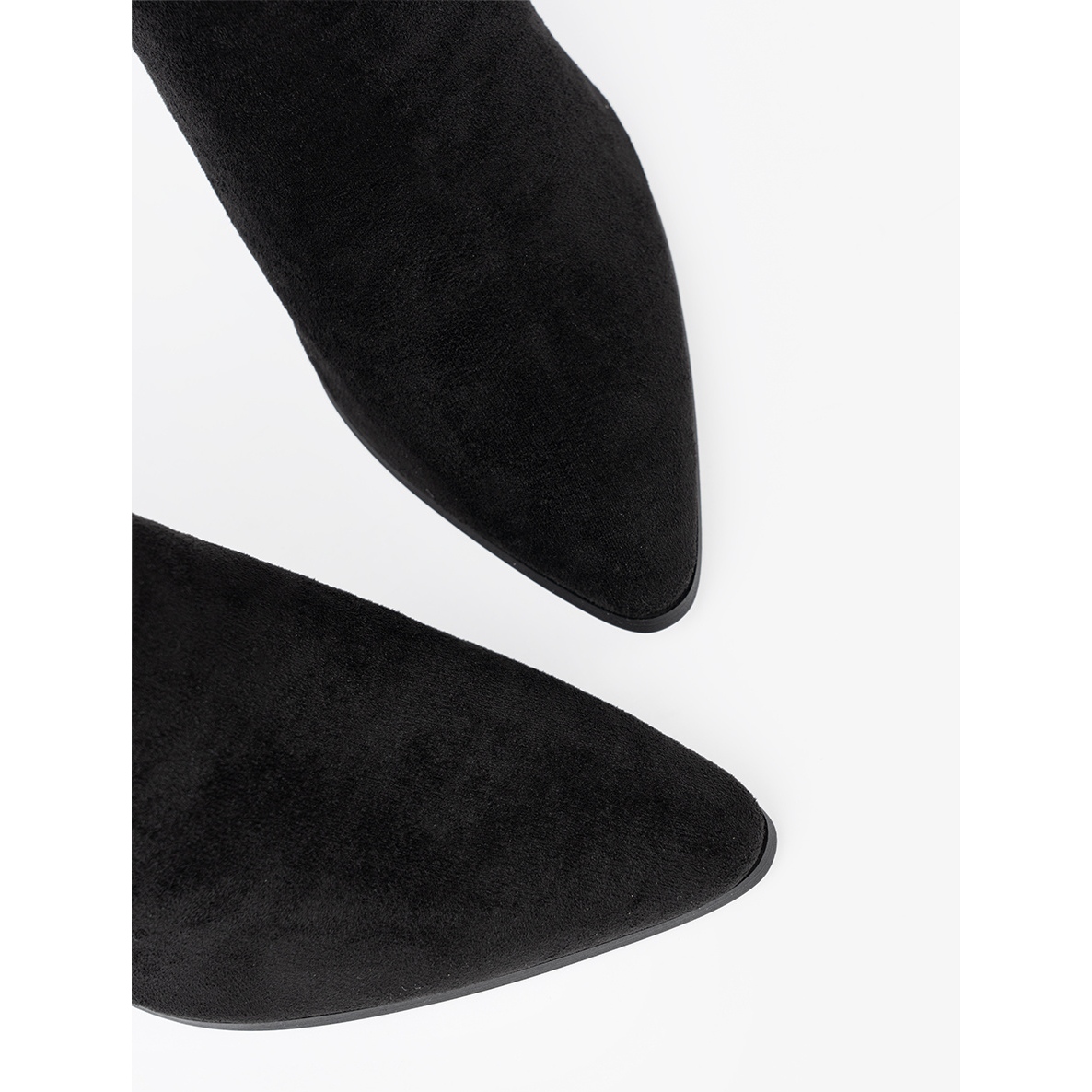 Elegante schwarze Stiefel mit einem Schmuckakzent des Herstellers Shelvt sind eine gute Wahl für Frauen, die Stil und Komfort schätzen. Diese modischen schwarzen Stiefel sind jeden Tag perfekt, besonders im Herbst und Winter. Sie bestehen aus ökologischem Wildleder und bieten nicht nur ästhetisches Erscheinungsbild, sondern auch den Komfort des Tragens dank der Erwärmung und eines textilen Innenraums.