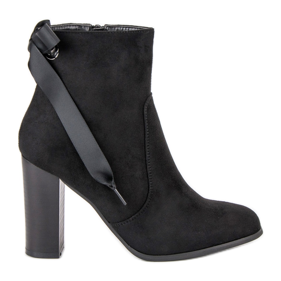 Wir bieten elegante Stiefeletten mit hohen Absätzen der renommierten Marke Super Mode an, die in der kommenden Saison zu einem untrennbaren Bestandteil Ihrer Garderobe werden. Diese schwarzen Stiefeletten aus hochwertigem, ökologischem Wildleder vereinen Eleganz mit Komfort.