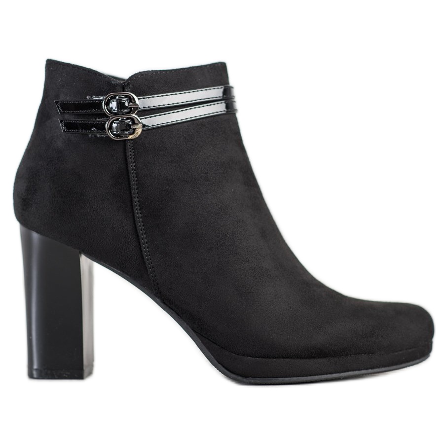 Entdecken Sie Eleganz und Komfort mit den schwarzen Stiefeletten von M.Daszyński, die zur perfekten Ergänzung Ihrer Schuhkollektion werden. Diese wunderschönen Stiefel mit hohen Absätzen, die bis knapp über den Knöchel reichen, werden auf jeder Party mit Sicherheit die Blicke auf sich ziehen. Sie bestehen aus hochwertigem Wildleder und verfügen über eine elegante Verarbeitung, die ihnen einen einzigartigen Stil verleiht.