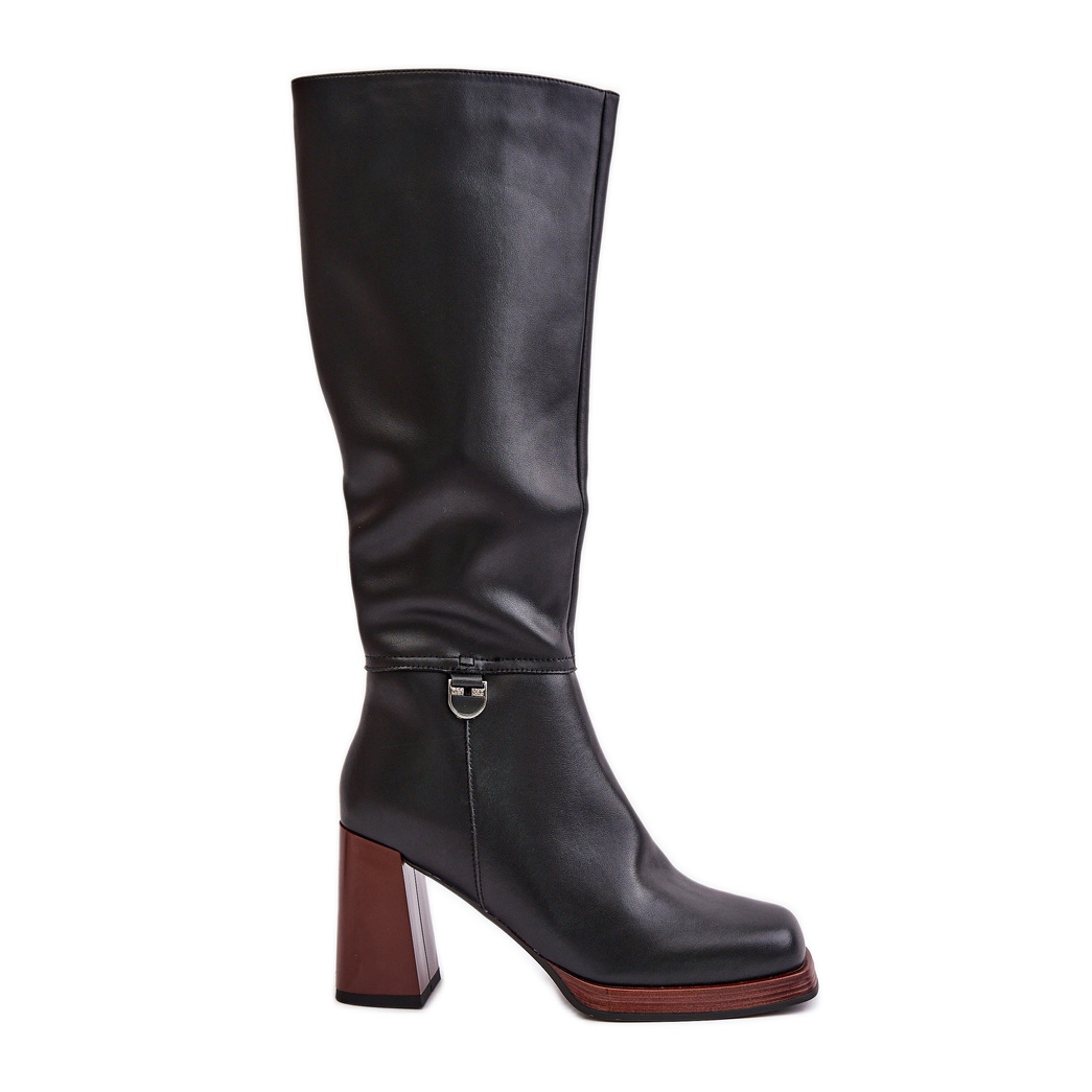 Details: S.Barski Elegante warme Lederstiefel mit hohem Absatz D&A JC42-39 Schwarz