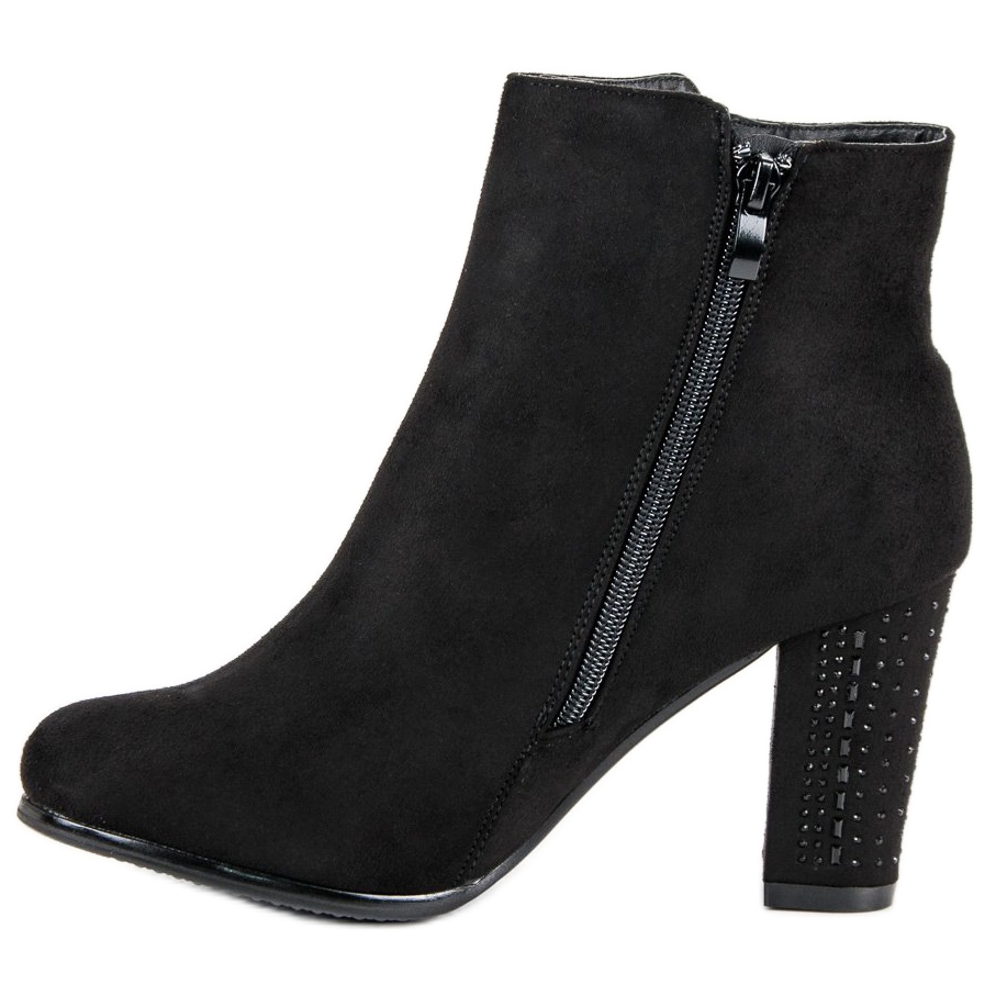Die Rückseite der Schuhe ist mit kleinen, glänzenden Kristallen verziert, die ihnen einen einzigartigen Charakter verleihen und sich perfekt für abendliche Ausflüge eignen. Ein zusätzlicher Vorteil ist die versteifte Ferse, die den Tragekomfort erhöht. Die Stiefel werden mit einem Reißverschluss geschlossen, was das An- und Ausziehen erleichtert, und die runde Spitze sorgt für dezente Raffinesse.