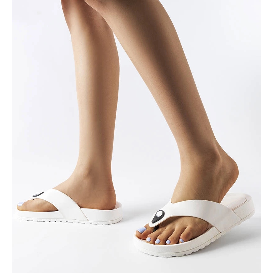 Elegante, minimalistische Elide Flip -Flops in einer klassischen, vollständig weißen Ausgabe - hell, bequem und perfekt für Sommertage. Ein einfacher Schnitt pro 2 cm -Plattform sorgt für ein bisschen Höhe und sorgt für den Komfort.