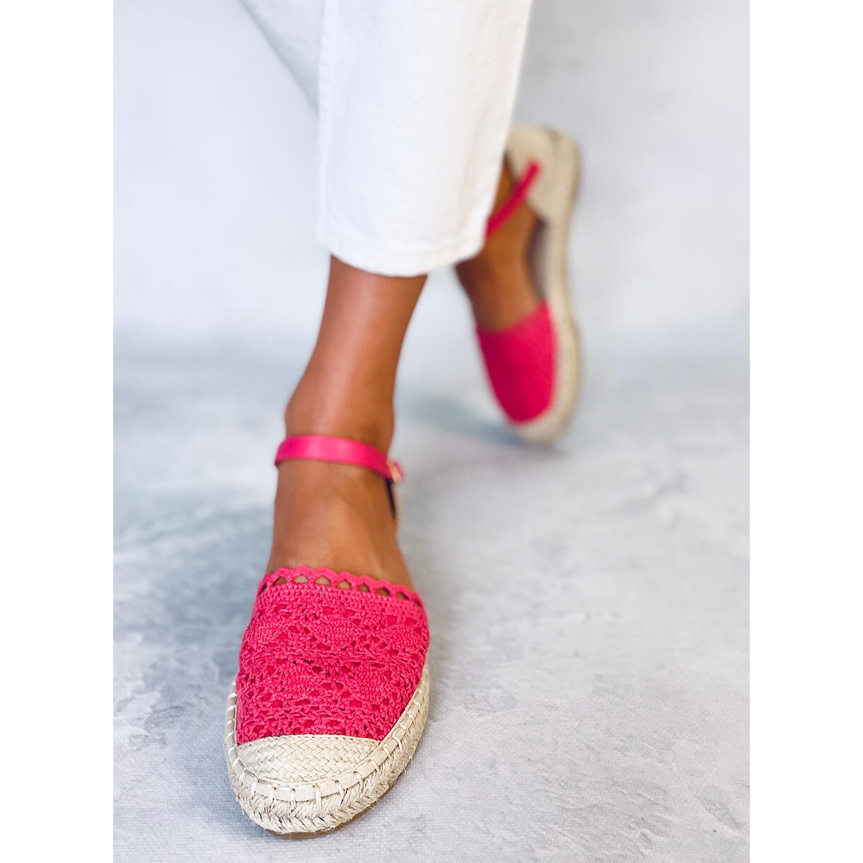 Lernen Sie die himbeerfarbenen Spitzen-Espadrilles L-1067 Red kennen, die die perfekte Kombination aus modischem Design und Tragekomfort darstellen. Diese bezaubernden Alltagsschuhe zeichnen sich durch ihr Cut-Out-Design und die zarte Spitzenverarbeitung aus, die die Blicke auf sich zieht und jedem Styling einen einzigartigen Charakter verleiht.