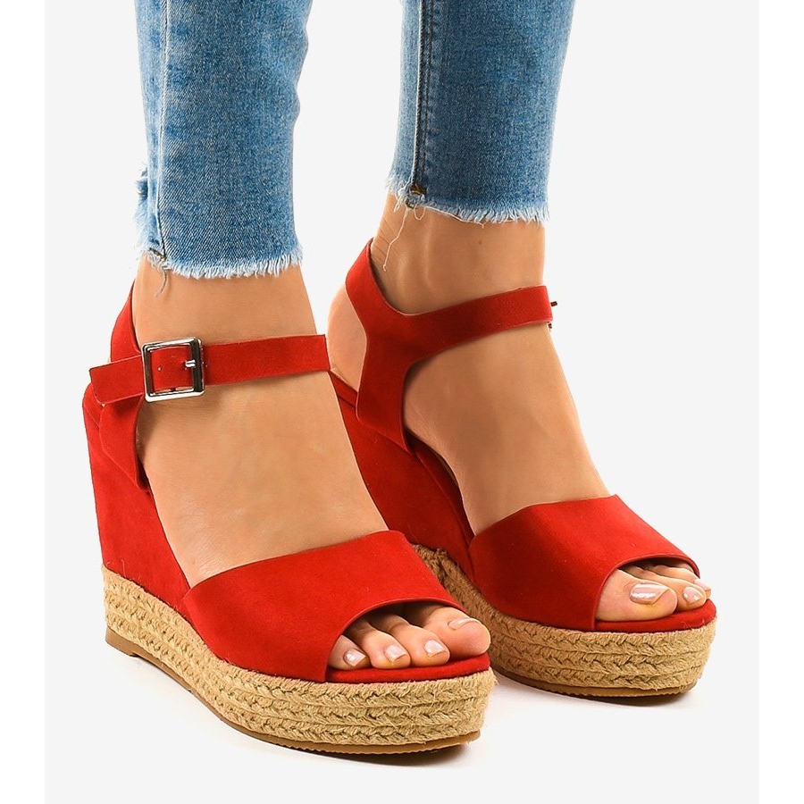 Rote Espadrilles-Keilsandalen 9R195 sind die perfekte Wahl für Frauen, die Wert auf Stil und Komfort legen. Ihre intensive rote Farbe wird sicherlich die Aufmerksamkeit jedes Besitzers auf sich ziehen und ihm Selbstvertrauen verleihen. Diese Sandalen sind der perfekte Begleiter für Sommertage und vereinen Eleganz und Funktionalität.