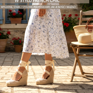Espadrilles mit Keilabsatz sind die beliebtesten Sommerschuhe französischer Frauen. Sie sind bequem, stabil und passen zu jedem Kleid. Wir zeigen Ihnen, wie Sie sie tragen und binden, um Ihre Beine schlanker zu machen.