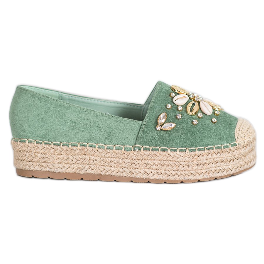 Wir präsentieren Seastar-Espadrilles in einem herrlichen Grünton, der mit Sicherheit die Aufmerksamkeit jedes Liebhabers einzigartiger Designs auf sich ziehen wird. Diese stilvollen Schuhe sind die perfekte Wahl für den täglichen Gebrauch und ergänzen den Sommerstil perfekt. Mit dezenten Strasssteinen verziert sorgen sie nicht nur für einen einzigartigen Look, sondern auch für Tragekomfort.