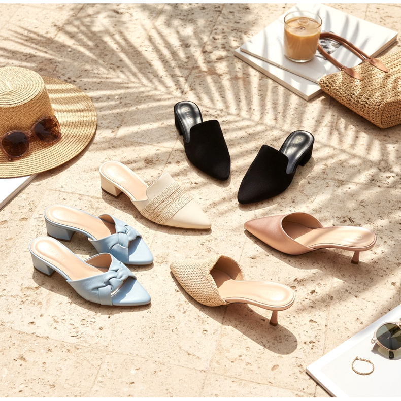Was Mules auszeichnet, ist ihr eleganter Minimalismus. Durch den Verzicht auf Riemen, Schnallen und Schnürsenkel wirken sie schlicht und modern. Gleichzeitig verleiht ihnen der offene Absatz eine Lässigkeit, die perfekt zur Sommerästhetik passt.