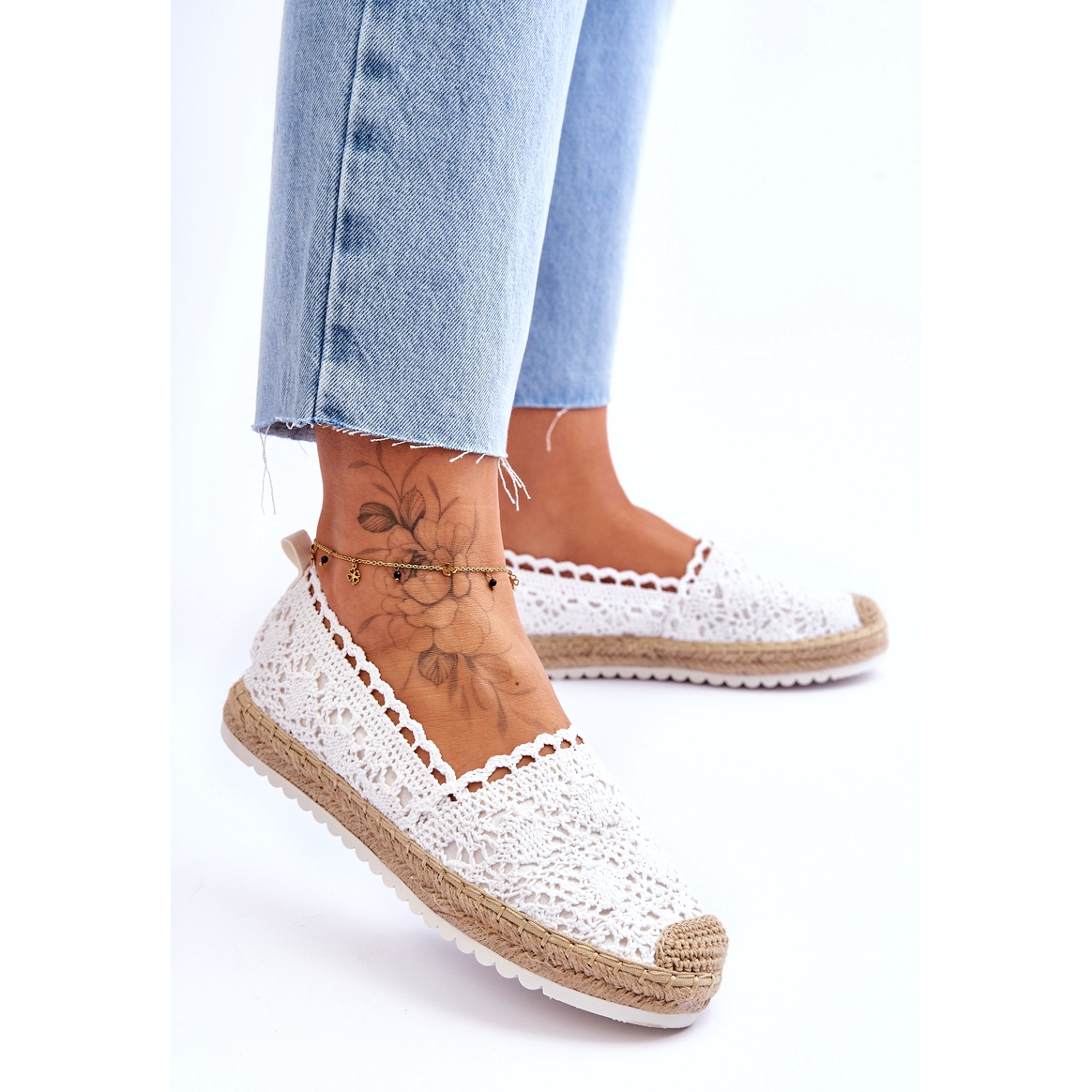 Details: FE1 Espadrilles zum Hineinschlüpfen aus Spitze in Weiß Blanco