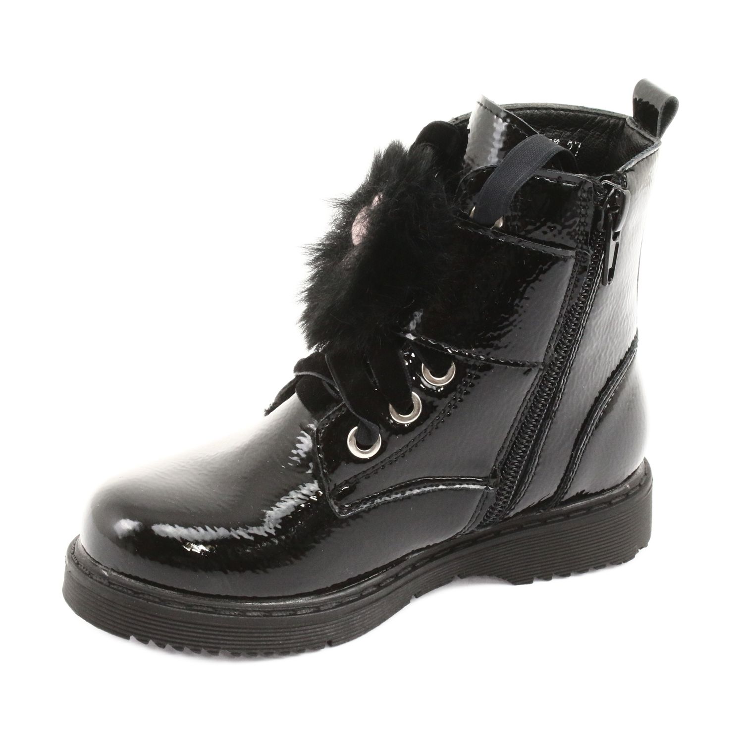 Modern und stilvoll – die schwarz lackierten Stiefel Evento 1438 sind das perfekte Schuhwerk für jedes Mädchen, das an kälteren Tagen modisch aussehen und sich besonders fühlen möchte. Sie sehen einzigartig aus, dank glänzendem Faux-Wildleder mit Lackfinish, das bei jedem Schritt Glanz und Eleganz garantiert.