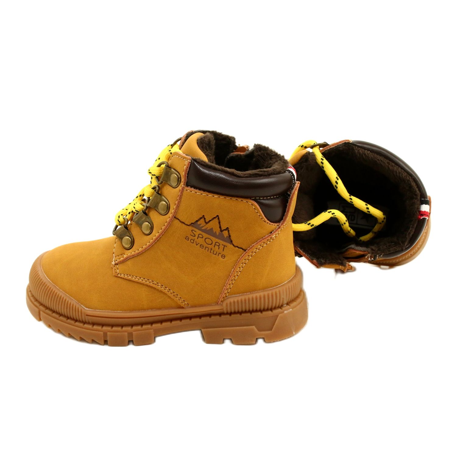 Stilvolle und warme Nachrichten Kinder-Trapper, Modell 22DZ23-5256 in einem Kamelschatten (gelb). Hergestellt aus hochwertigem ökologischem Leder mit einem weichen Schuhfell im Inneren - perfekt für kühlere Tage.