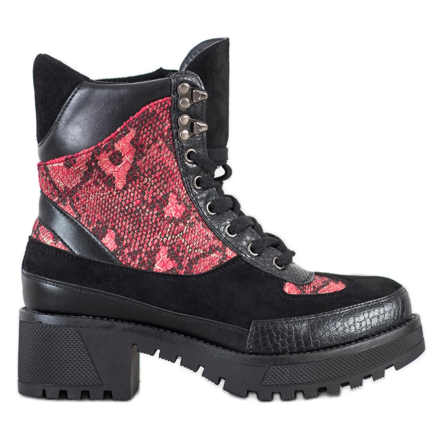 Lernen Sie die modischen Groto Gogo Rockowe Workery Stiefeletten in einem einzigartigen Schwarz-Rot-Farbschema kennen. Diese stilvollen Schuhe sind eine perfekte Kombination aus Eleganz und Komfort und eignen sich sowohl für das Alltagsstyling als auch für rockige Looks.