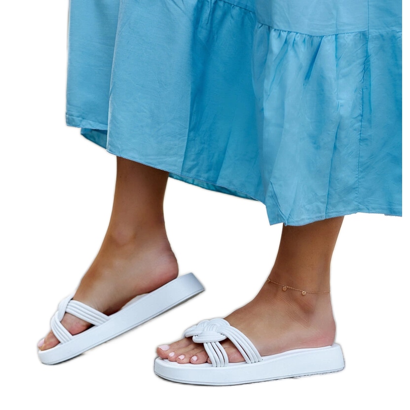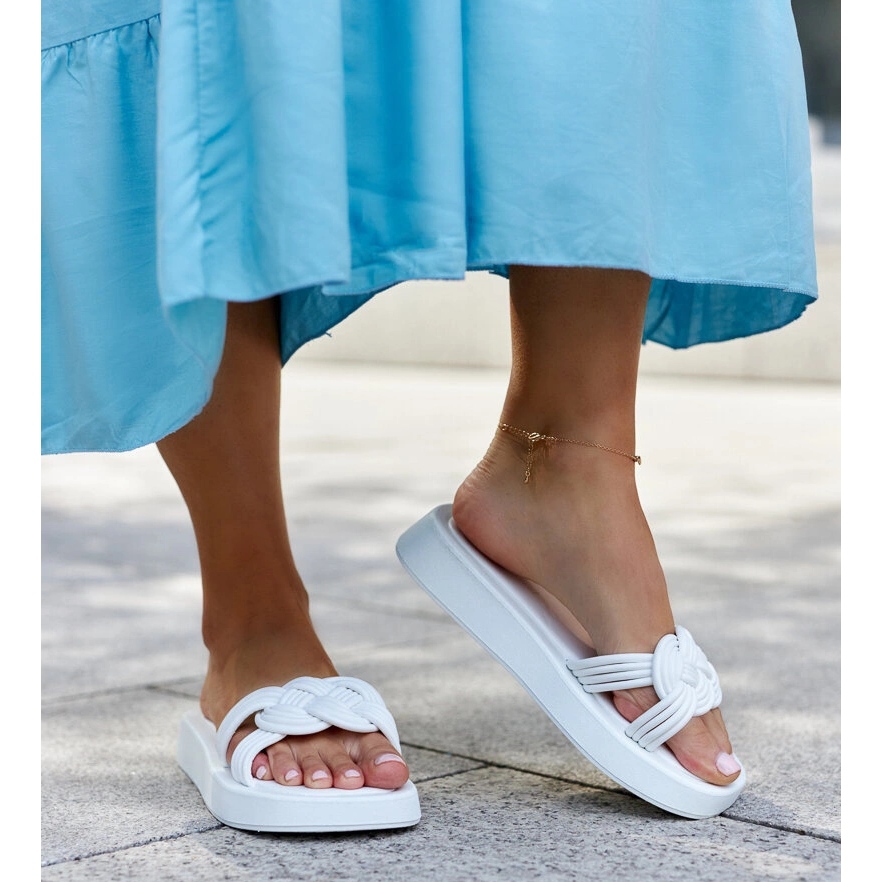 Ferrei White Gummig zehenstegsandalen sind eine gute Wahl für warme Sommertage. Ihr elegantes und minimalistisches Design mit einer runden Nase macht sie nicht nur bequem, sondern auch zu einem modischen Akzent in jedem Sommerstilisierung. Diese Flip -Flops aus hochwertigem Synthetik und Gummi sind sowohl beim Gehen am Strand als auch auf der Entspannung auf der Terrasse oder im Garten großartig.