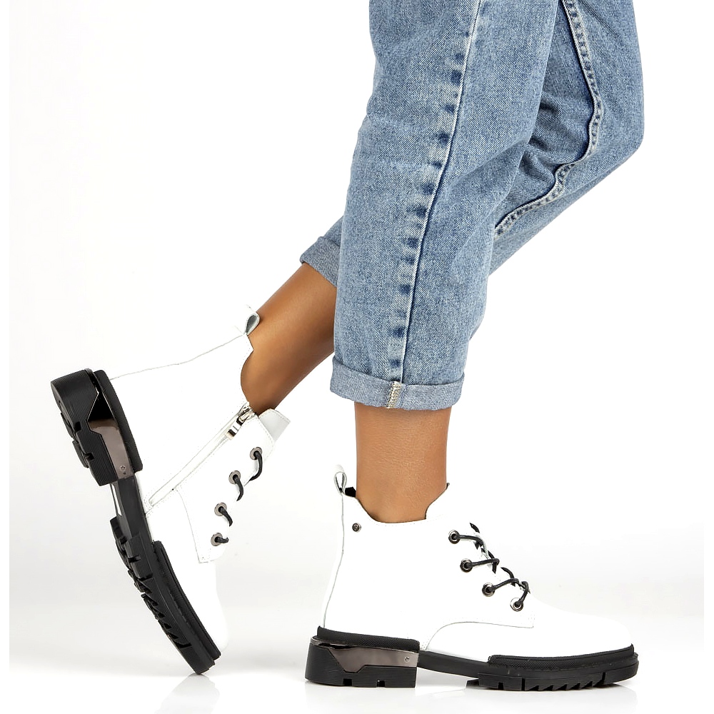 Stylische, lackierte Filippo DBT4173 -Stiefel in einer klassischen weißen Farbe kombinieren einen eleganten Look mit einem sorgfältigen Finish. Sie bestehen aus natürlichen Lackierleder, isoliert mit einem angenehmen, kurzen Fell im Inneren und bieten während kühleren Tagen Wärme und Komfort. Flache Ferse mit einer Höhe von 3,5 cm und einer abgerundeten Nase garantiert Stabilität und Komfort, den ganzen Tag zu tragen. Der Reißverschluss und die Schnürfäden erleichtern die Anpassung des oberen, und das subtile Logo an der Seite fügt Stil hinzu.