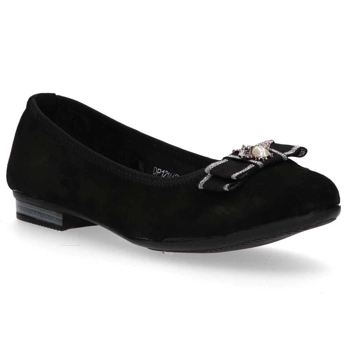 Dank des Stofffutters fühlen sich Ihre Füße den ganzen Tag über wohl. Ein flacher 1,5 cm hoher Absatz und ein 0,5 cm hohes Plateau machen die Schuhe perfekt für den täglichen Gebrauch, ohne dass Sie ein Unbehagen verspüren. Das Modell DP1214/20 Bk Black zeichnet sich durch eine elegante mandelförmige Nase und eine charmante Schleife aus, die ihm subtilen Charme verleiht.