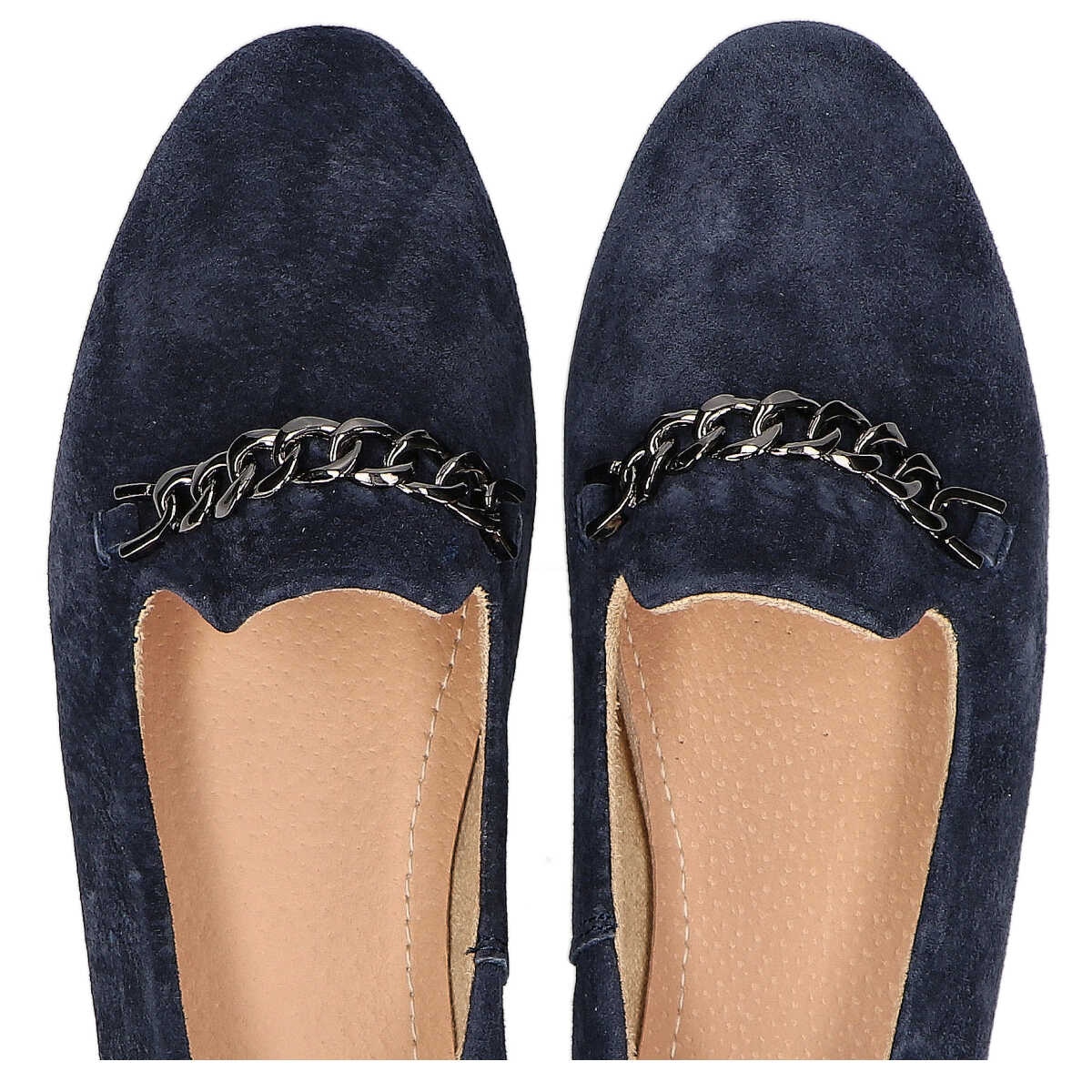 Dieses Modell zeichnet sich durch einen flachen 0,5 cm hohen Absatz und ein dezentes 1,5 cm hohes Plateau aus, das für etwas Leichtigkeit und Stil sorgt. Die Mandelform der Spitze unterstreicht die Eleganz der Schuhe und die marineblaue Farbe in Kombination mit der braunen Sohle ergibt ein harmonisches Ganzes.