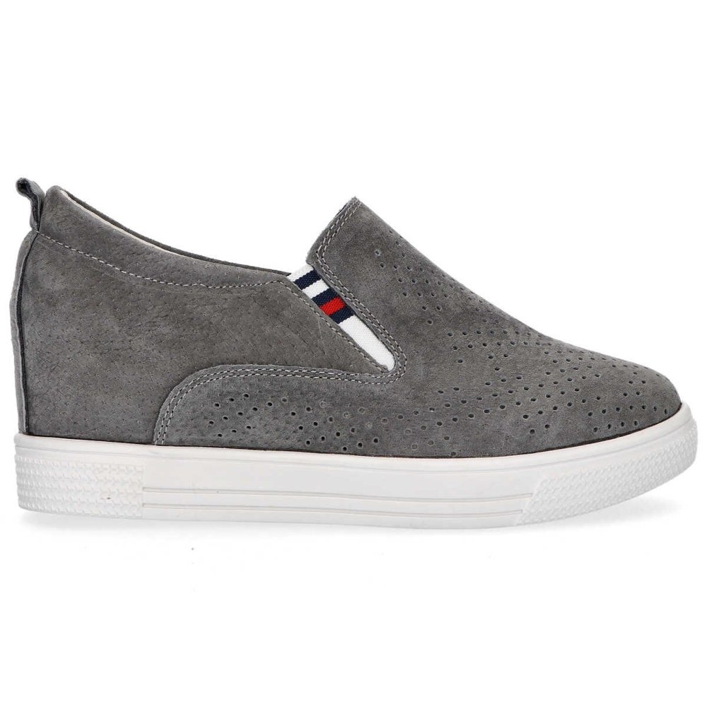 Dieses Modell ist zusätzlich mit einem versteckten Keil ausgestattet, der die Gesamthöhe auf 6 cm erhöht, für zusätzlichen Charme sorgt und die Beine optisch verlängert. Die runde Spitze ist ein klassisches Detail, das den eleganten Charakter des Schuhwerks unterstreicht.