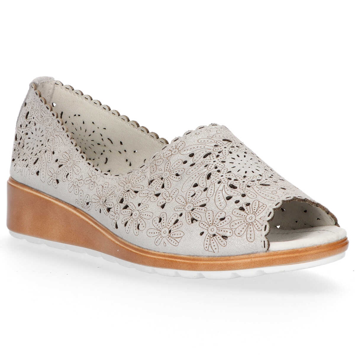 Das Modell DP1399/20 zeichnet sich durch ein interessantes Design aus, das durch durchbrochene Details ins Auge fällt. Sie haben eine runde Spitze und einen bequemen 3,5 cm hohen Keilabsatz, was sie zur perfekten Wahl sowohl für die Arbeit als auch für Wochenendausflüge macht. Ein mädchenhafter Akzent in Form eines 1 cm hohen Plateaus sorgt für Subtilität und sorgt gleichzeitig für Stabilität.