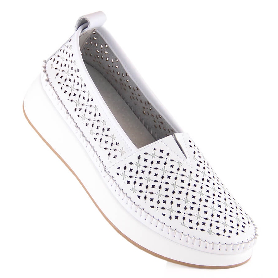 **Durchbrochene Slip-On-Schuhe aus Leder, weiß Filippo DP4555**