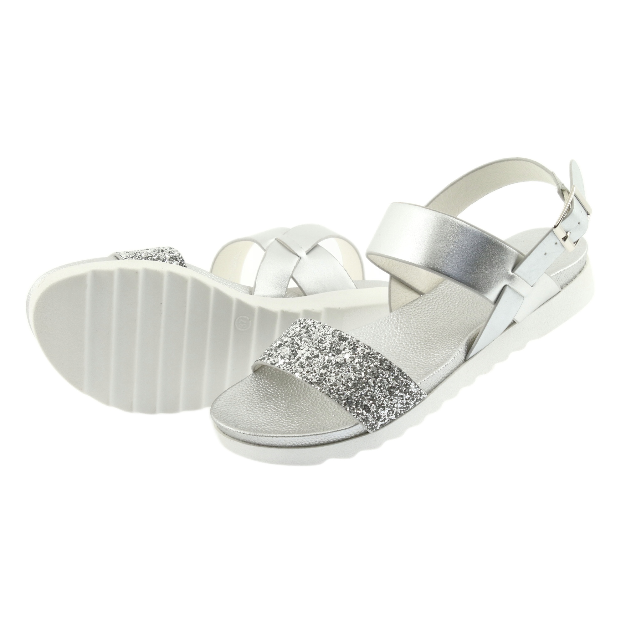 Filippo 685 Elegante und komfortable Sandalen sind ein Vorschlag für Frauen, die modische und komfortable Schuhe im Frühling und Sommer suchen. Der silberne Glanz mit einem Glitzergürtel verleiht ihnen einen effektiven, leicht glamourösen Charakter, und der sanft ausgekleidete Einsatz und eine stabile Plattform bieten bei langen Spaziergängen Komfort.