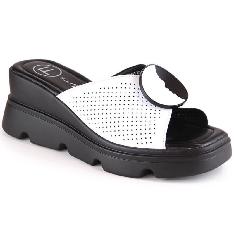 Filippo W DS4608 Keil-Pantoletten aus weißem Leder – Eleganz und Komfort im Sommerstil