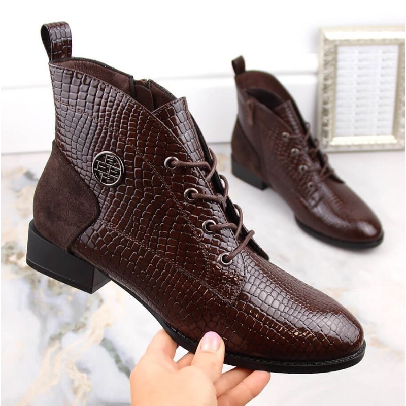 Stylische, komfortable und isolierte - lackierte Filippo -Stiefel in Paw478b sind ein Vorschlag für Frauen, die an kühleren Tagen modische und praktische Schuhe suchen. Das Obermaterial mit der "Krok" -Textur in einem glänzenden Finish verleiht Charakter und verhaltene braune Farben kombinieren sich leicht mit ungezwungenen und eleganteren Stilisierungen.