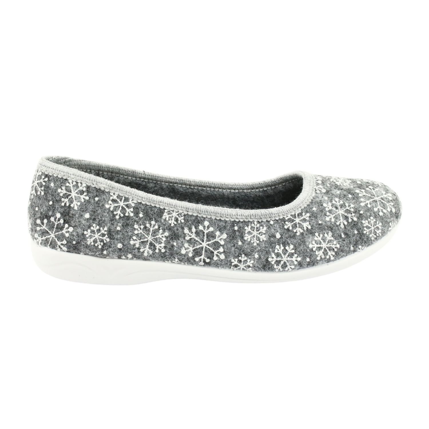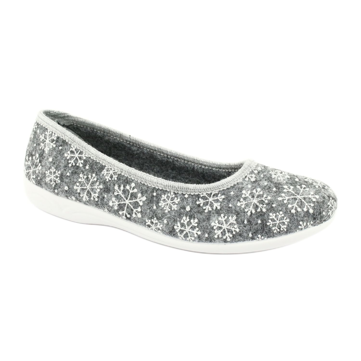 Adanex 24213 Schneeflocken-Hausschuhe aus Filz in Weiß und Grau sind die perfekte Wahl für Frauen, die Komfort und Stil in ihrem Zuhause suchen. Diese Ballerinas aus hochwertigem Filz sorgen für Wärme und Komfort und sind somit die perfekte Lösung für kältere Tage.