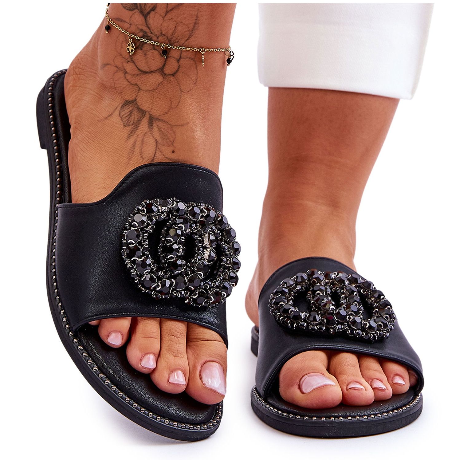 Details: Flache Damenhausschuhe mit Verzierungen S.Barski KV-520-3 Schwarz