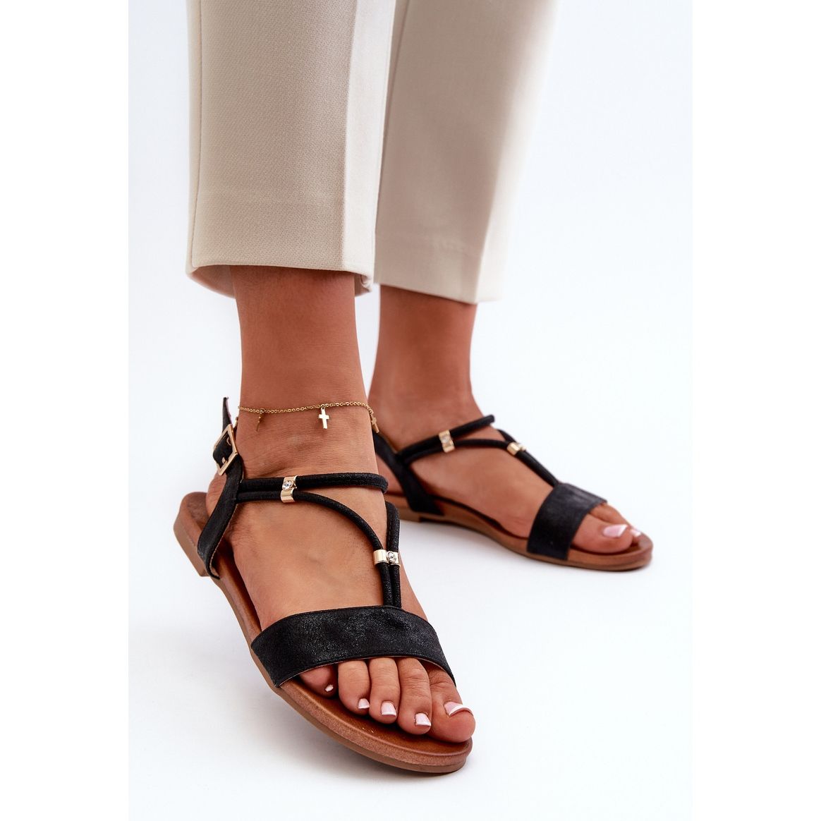 Details: Flache Damensandalen mit Riemen S.Barski KV27-010 Schwarz