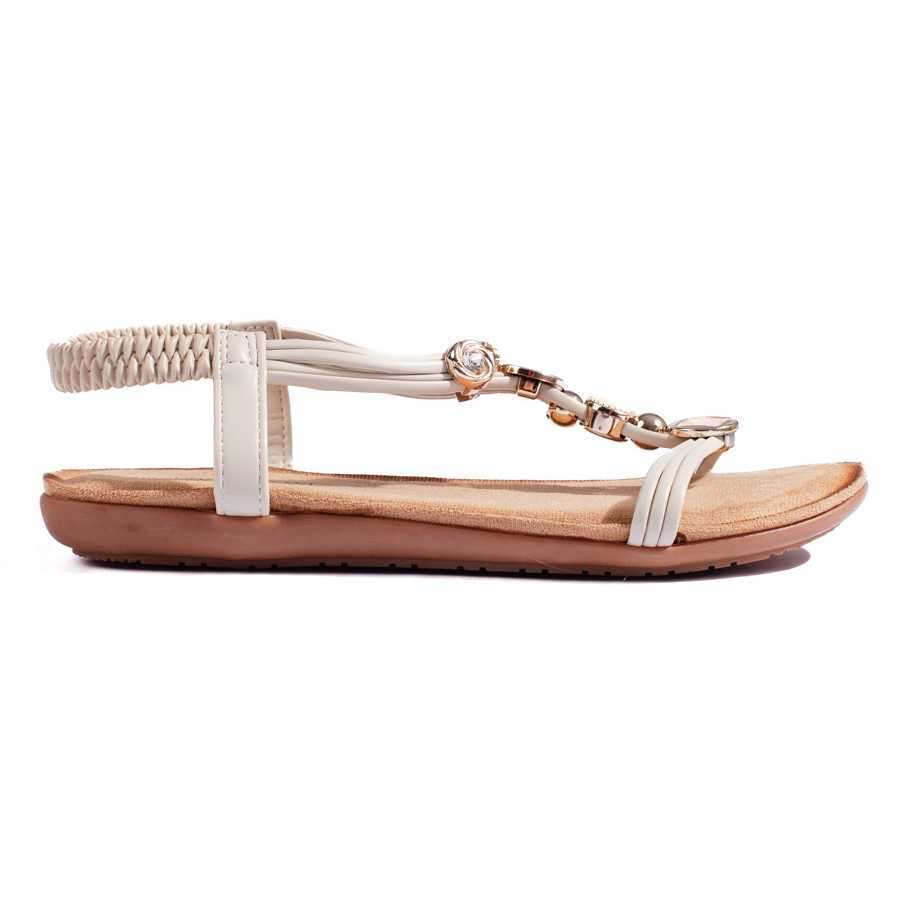 Die modische beige Farbe in Kombination mit elegantem Accessoires in Form von Zirkonen und Strasssteinen macht diese Sandalen sowohl zu klassischen als auch zu modischen Stilisierungen perfekt. Ihr eingefügter Schnitt macht das Anziehen und Abnehmen schnell und störend -frei und eine flache Ferse mit einer Höhe von 3 cm garantiert auch bei langfristigen Verschleißkomfort.