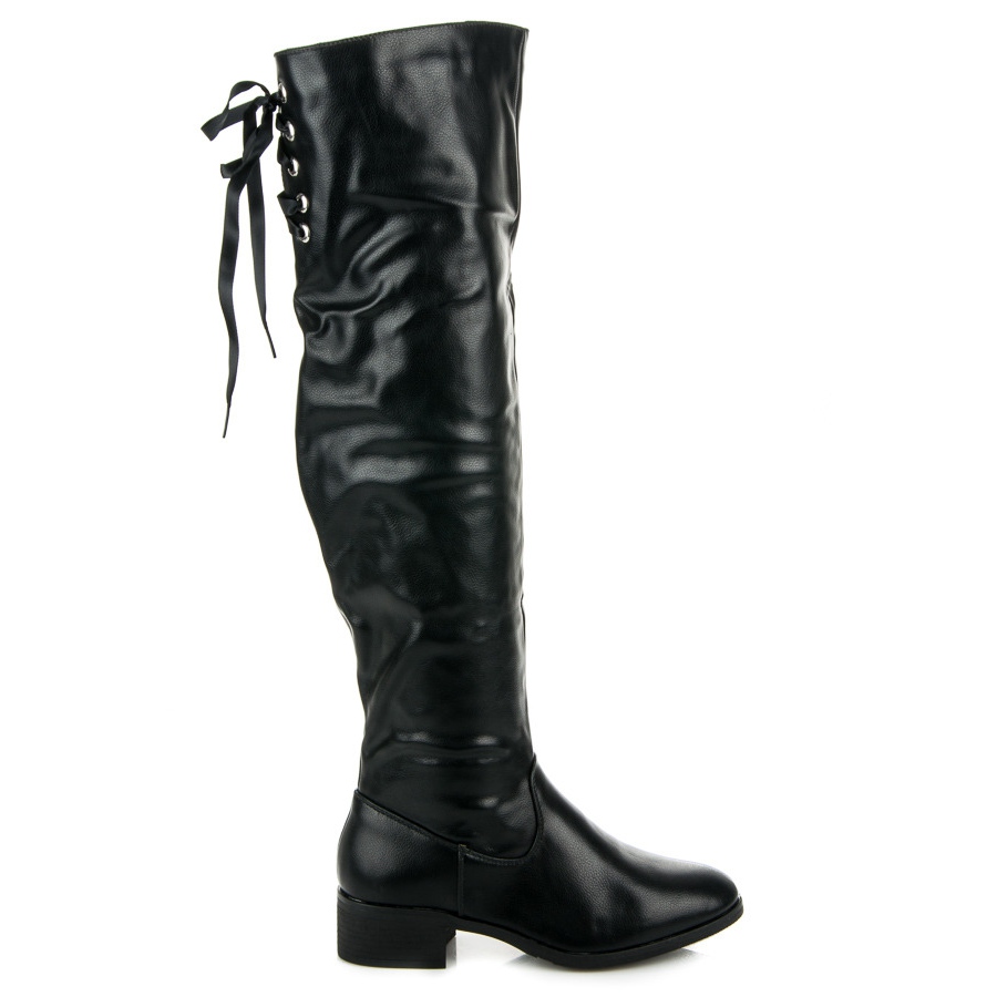 Details: Flache Overknee-Stiefel mit Bindung schwarz