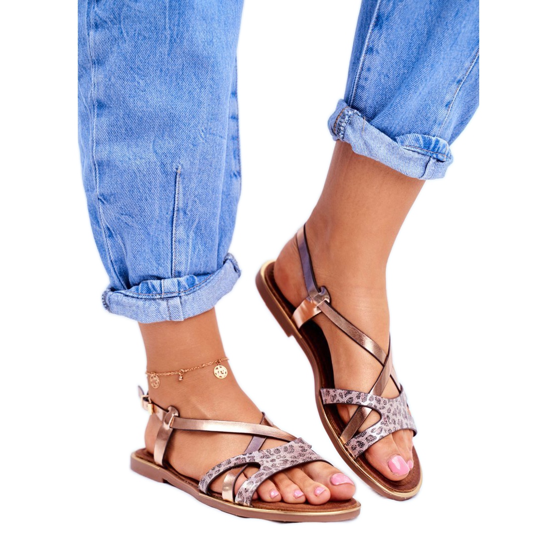 Eines der herausragenden Elemente dieser Sandalen ist der verstellbare Knöchelriemen, der eine perfekte Passform für jedes Bein ermöglicht. Stylische Metallic-Akzente und ein animalisch-dominiertes Muster verleihen ihnen einen einzigartigen Charakter, der sie zu einer perfekten Ergänzung sowohl zu luftigen Kleidern als auch zu lässigen Jeans macht.