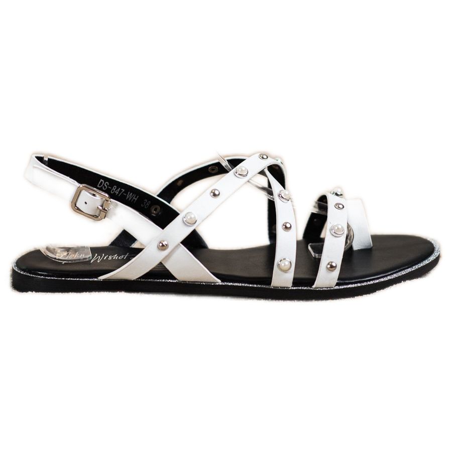 Details: Goodin Flache Sandalen mit Strasssteinen weiß