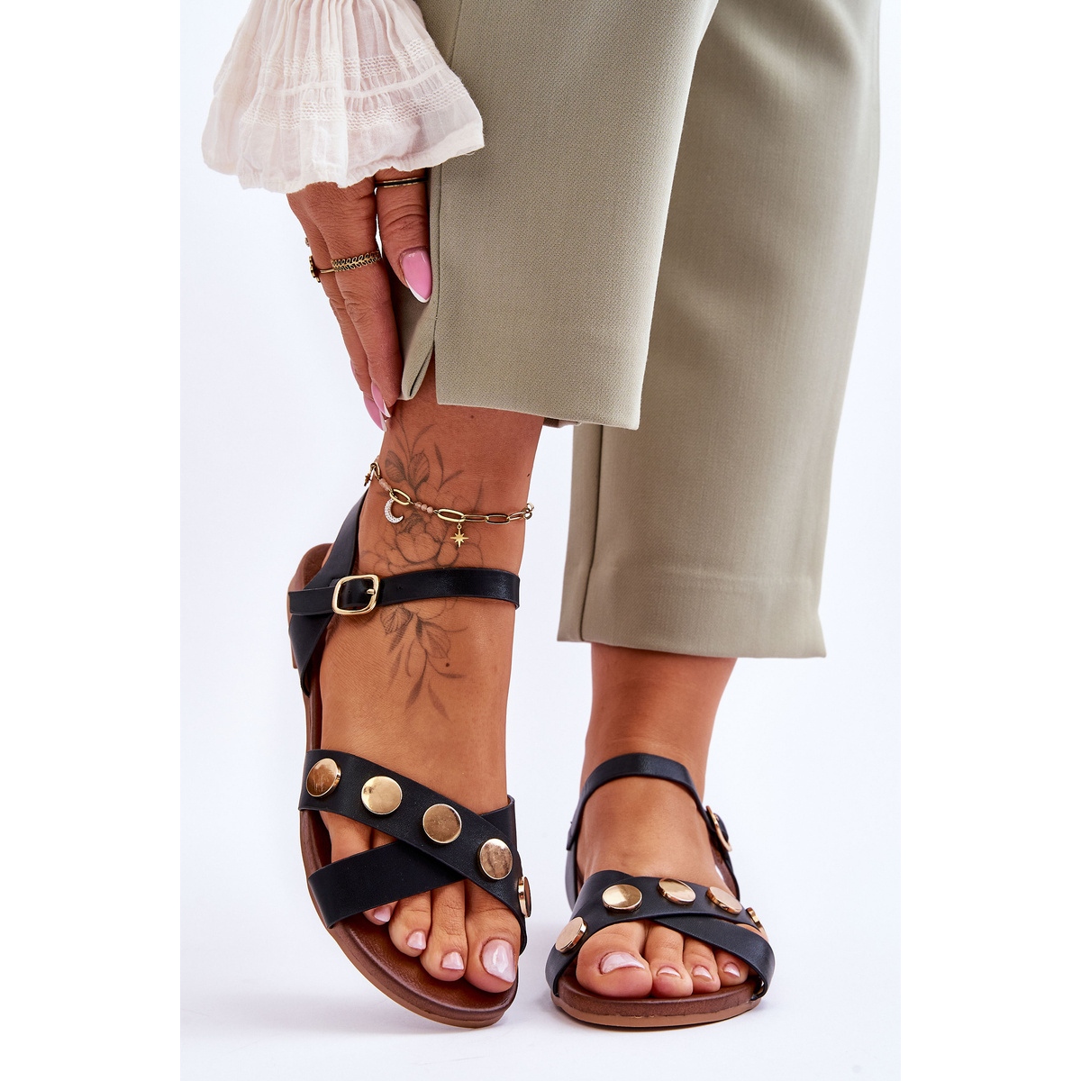 Flache Sandalen S. Barski KV-5541-35-Black mit goldenen Details