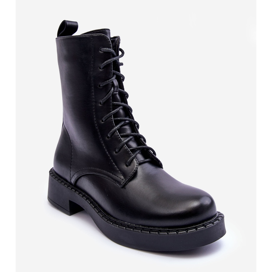Details: WS1 Flache schwarze Aganne-Arbeiterstiefel