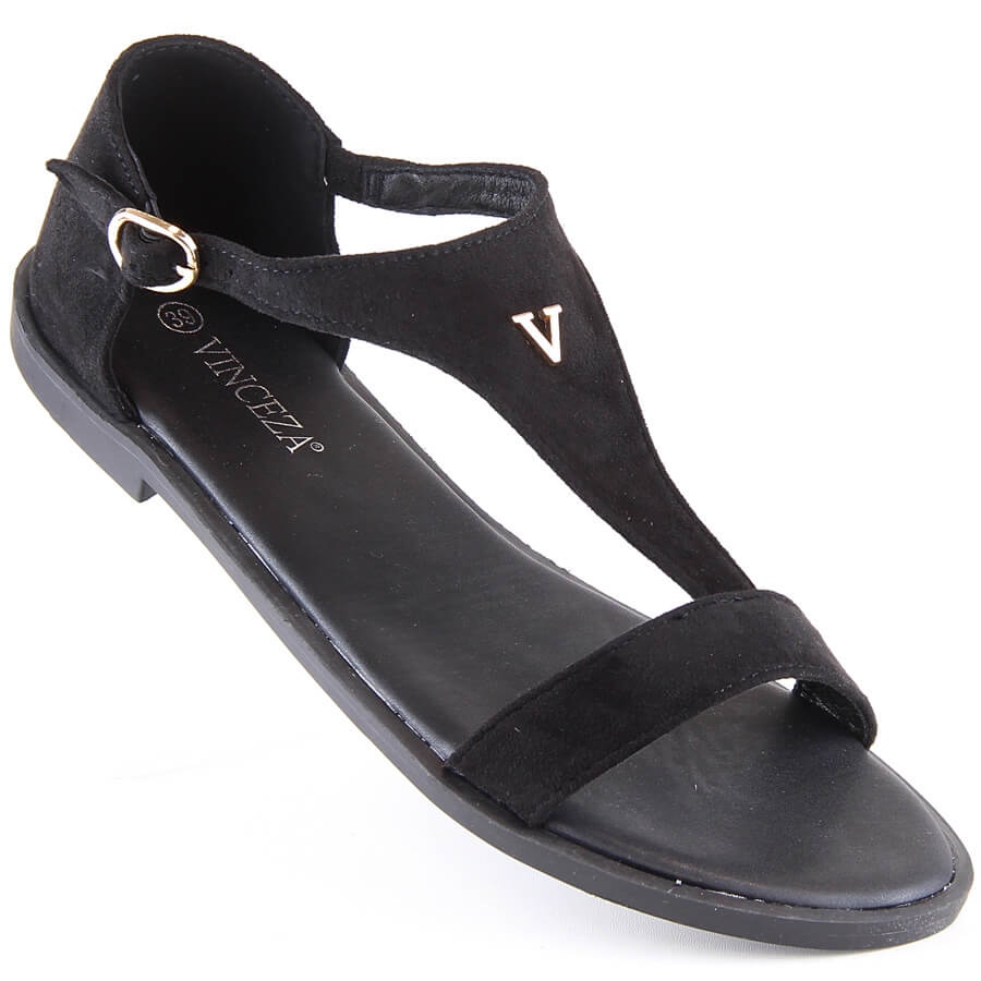 Details: Flache schwarze Wildledersandalen für Damen Vinceza 17270