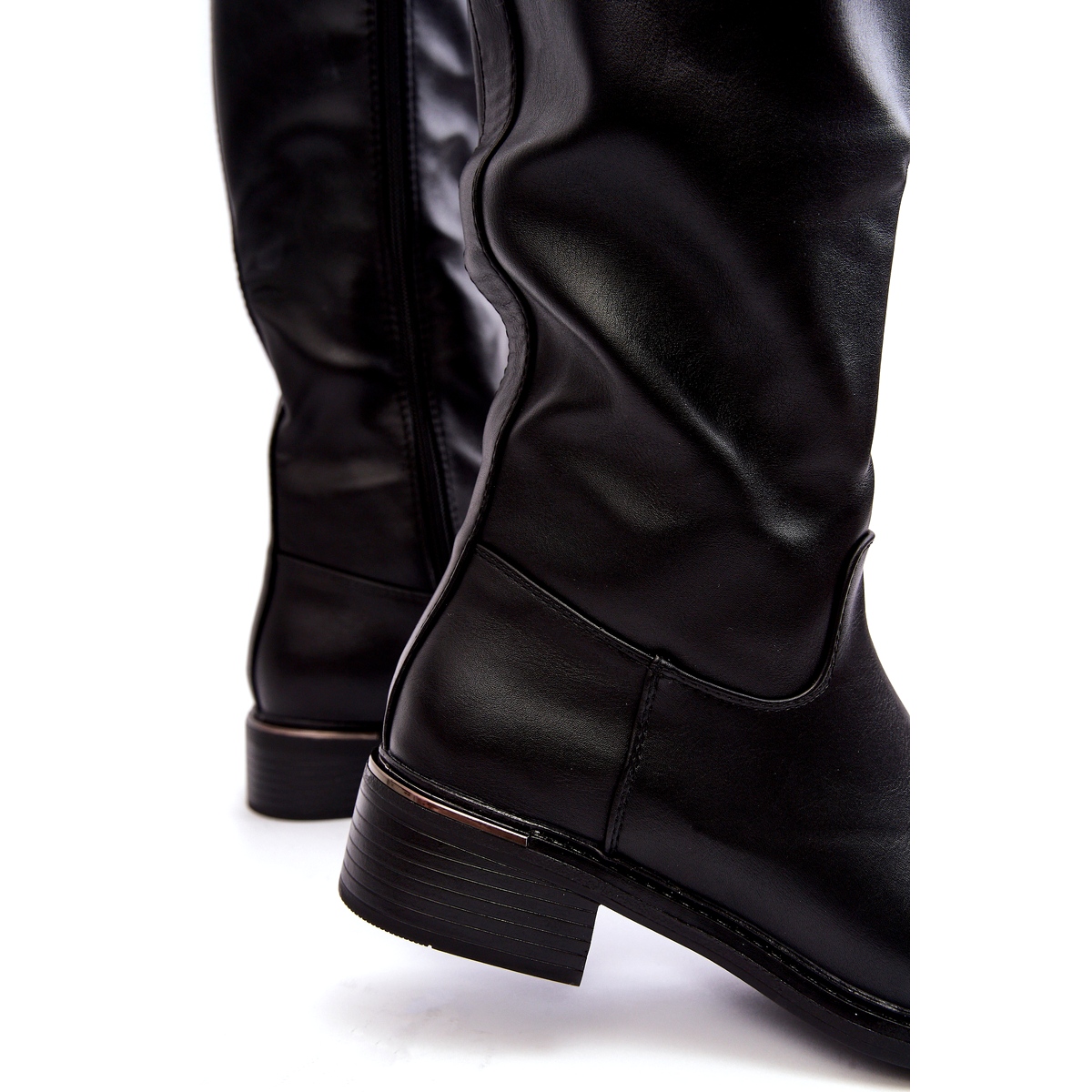 Details: Diamantique Flache Stiefel der Frauen vor dem Knieschwarzenknie
