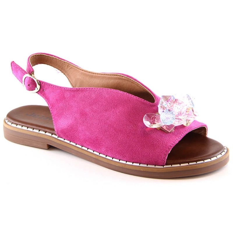 Details: Flache Wildledersandalen mit Kristallen Jezzi W RMR2266-2 fuchsia rosa