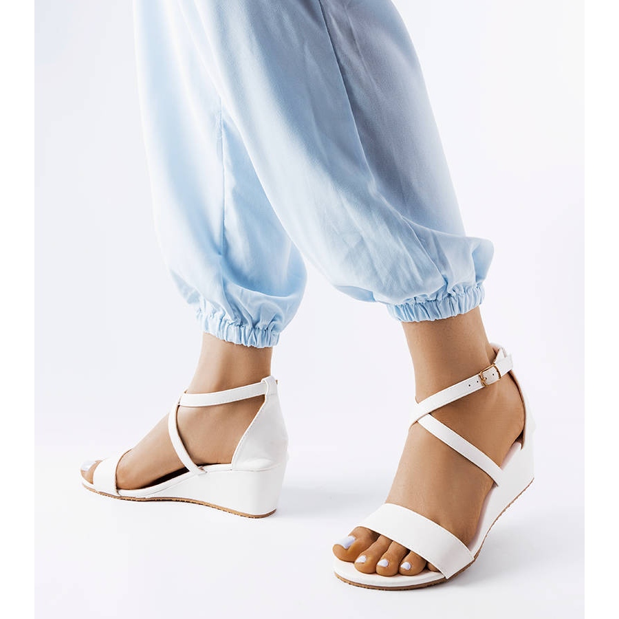 Wir präsentieren elegante weiße Flushing-Keilsandalen, perfekt für den Sommer. Diese klassischen Damenschuhe der Marke Inna Marka zeichnen sich durch hochwertige Verarbeitung und modisches Design aus.