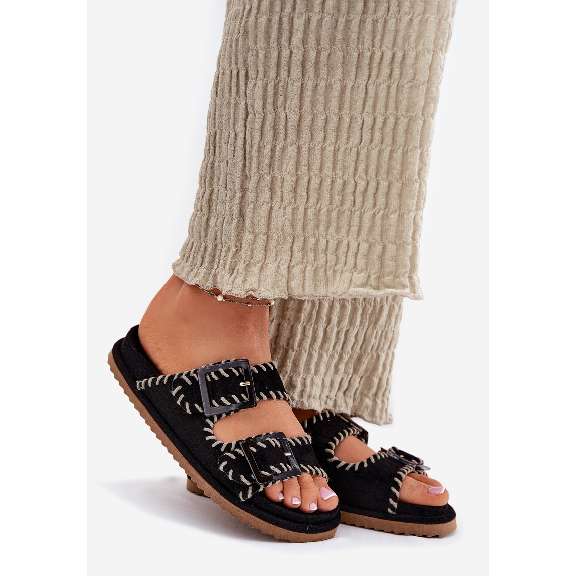 Details: Inna Flip -Flops für Frauen mit Schnallen und dekorativem schwarzem Beschuss